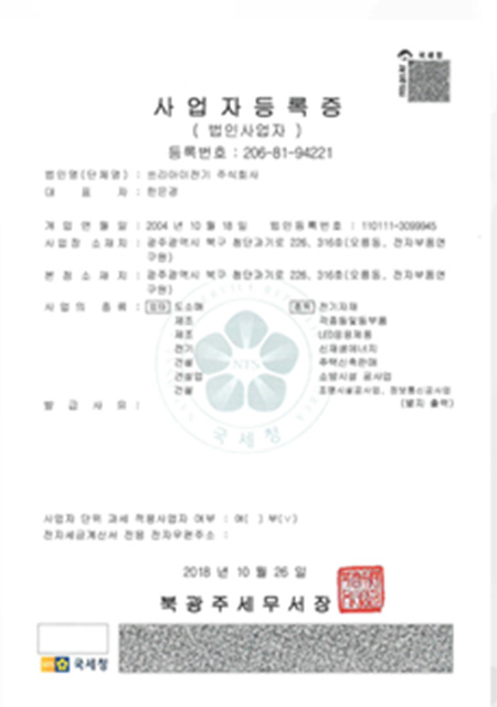(인허가사항) 사업자등록증 페이지 정보 작성자 최고관리자 댓글 0건 조회 65회 작성일 22-03-12 18:35 본문 사업자등록증 검색 목록 답변 글쓰기 이전글전기공사업등록 22.03.12